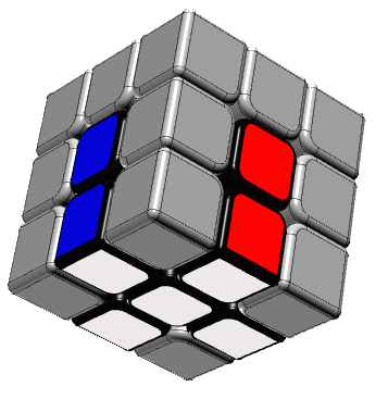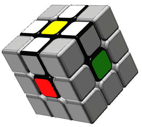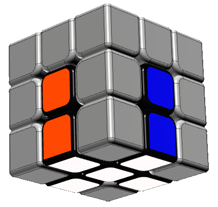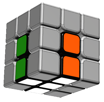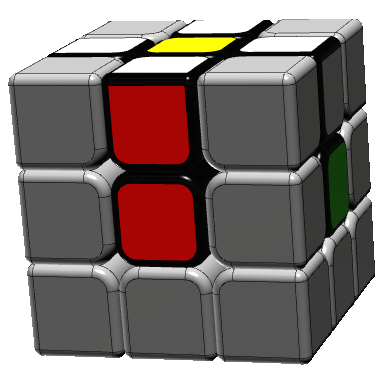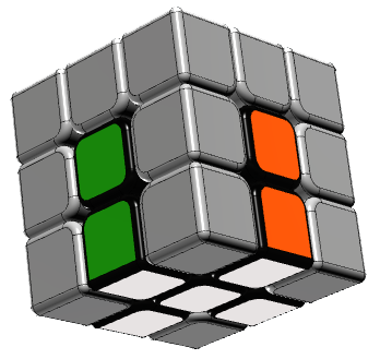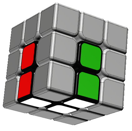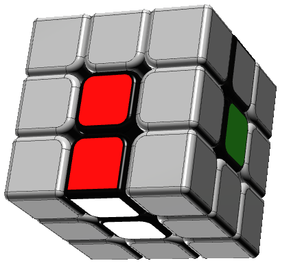 ⑤转动底部两层使侧面颜色相同,再转动侧面一层完成绿白棱块