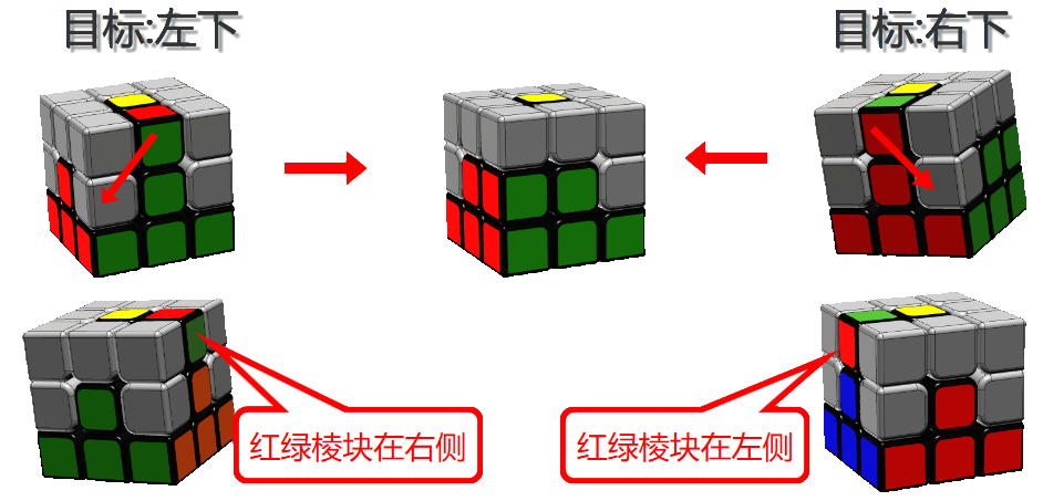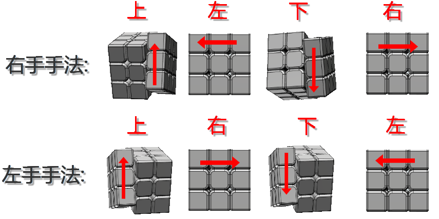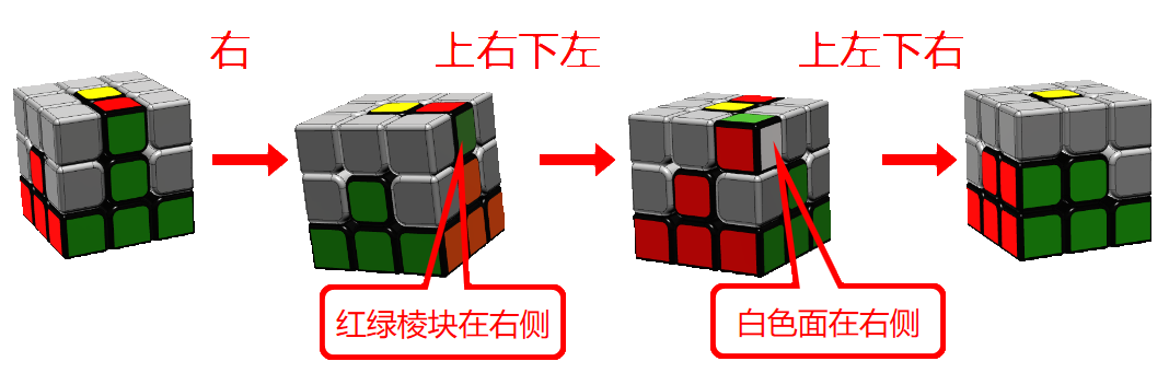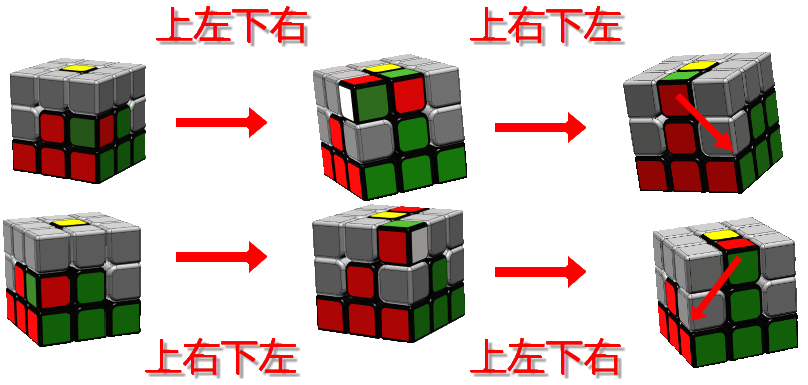 转动顶层,直到出现情况一或情况二,并最终完成四个棱块。