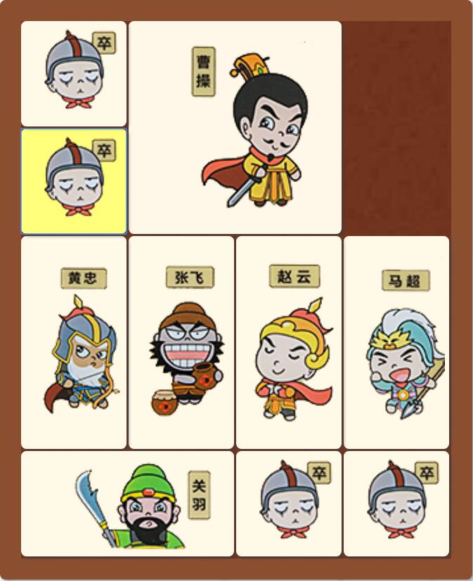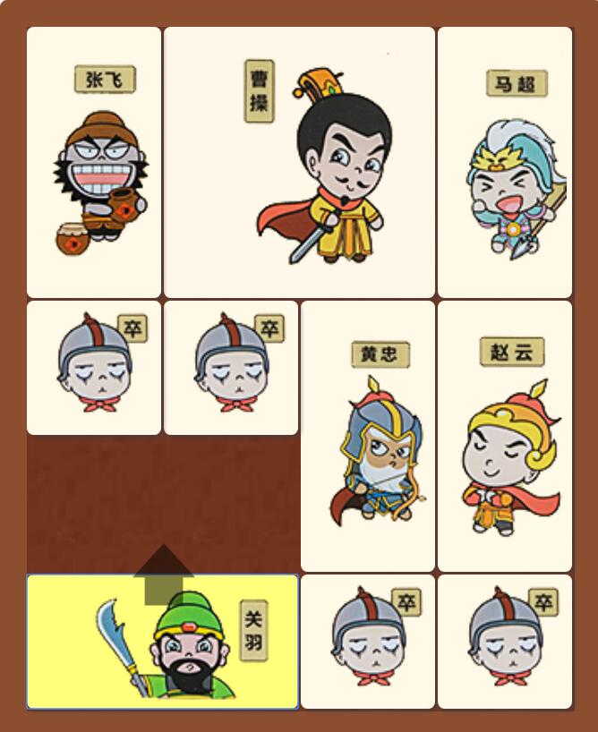 探究二:四小兵帮助曹操移到中间(四大将到顶部)。