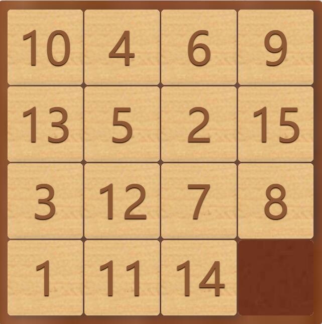 在4×4的正方形棋盘中,1-15个数字被随机打乱!